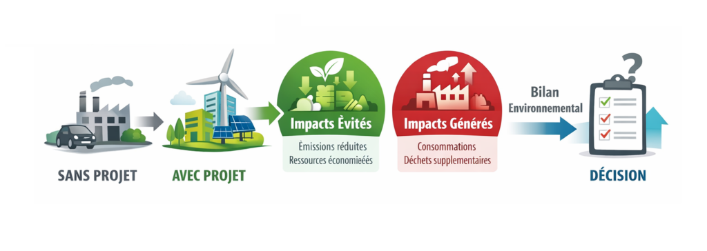 Concrètement, cette méthode repose sur une comparaison entre une situation « avec projet » et une situation de référence « sans projet ». Elle permet ainsi de mesurer les bénéfices environnementaux attendus objectivement, mais aussi les impacts générés afin de sécuriser les décisions.